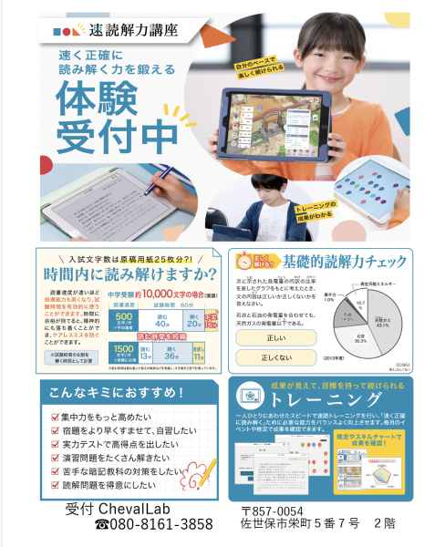 ビジョントレーニング、脳力トレーニングなど様々な角度からの分野を取り入れて、速読解力を育む!