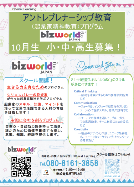 アントレプレナーシップ教育Biz Worldスクール10月生募集!