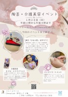 1月28日日曜日午前10時から午後4時まで、介護美容・陶芸のイベント開催します!介護美容は、お子様から高齢者の方まで、どなたでも受けることができます!今回は、ネイルレクレーション、メイクレクレーシ...