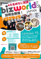 今年4月から、長崎市においてアントレプレナーシップ(起業家精神)教育「BizWorld」を開講いたします!それに伴い、説明会を開催いたします。2月17日(土) 午後2時からと午後4時からの2回、長崎市民会館...