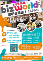 アントレプレナーシップ教育(起業家精神教育)プログラム「BizWorld」の4月生募集説明会を開催します。アントレプレナーシップ教育って?、これからを生きていくために必要な21世紀型スキルとは?実際に会社...